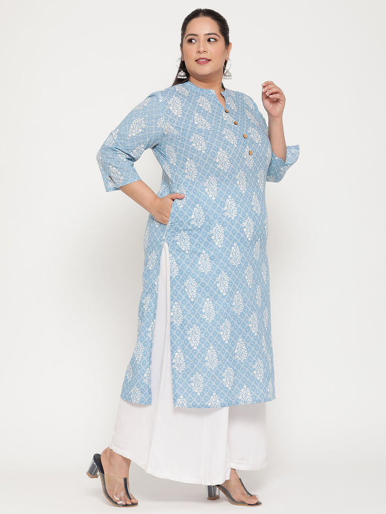 Women Blue Print Plus Size Kurta